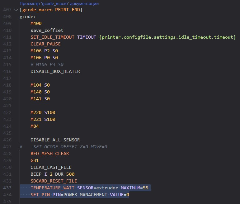 По итогу мы получаем функцию автоотключения принтера после удачного завершения печати и остывания экструдера. Удачи)