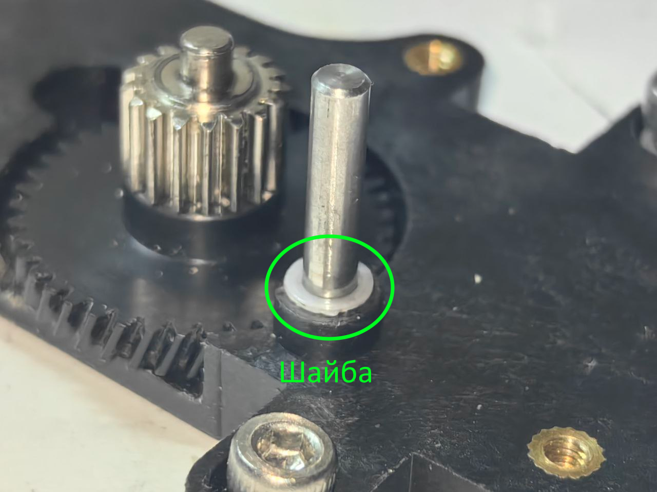 Разбираем фидер и устанавливаем шайбу на вал вот так: