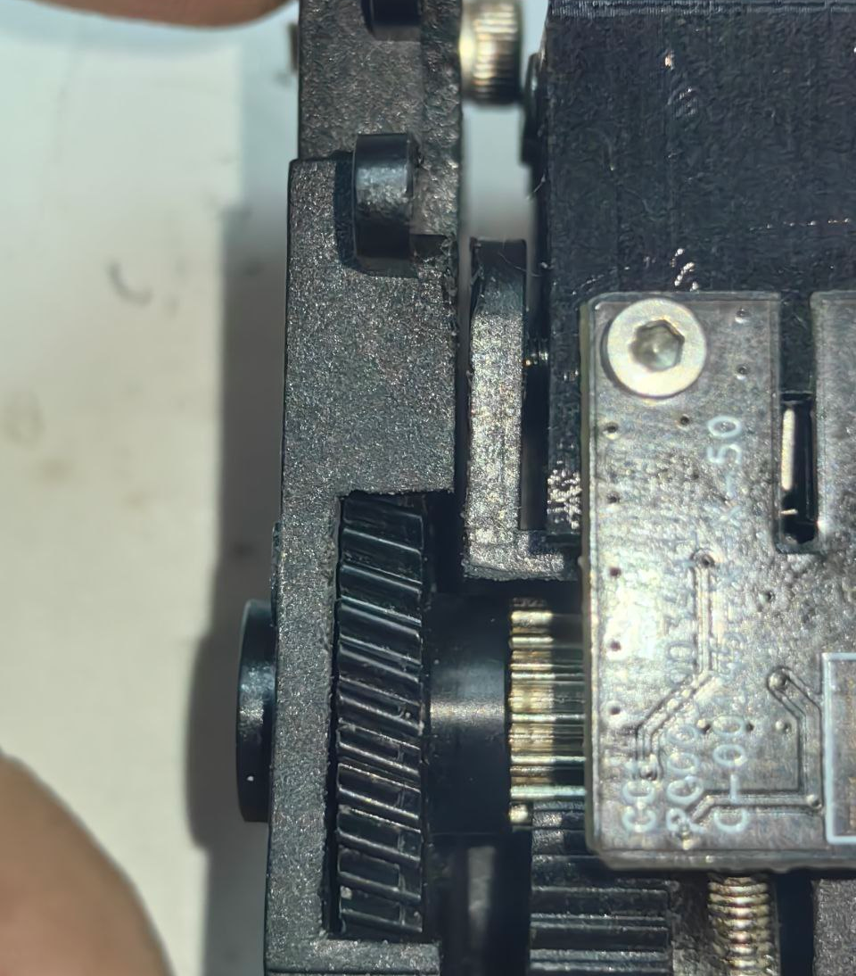 Чтобы проверить наличие данной проблемы надо снять фидер, чтобы мотор не мешал свободному вращению шестерней, и дать импульс на вращение роликам. Ролики должны провернуться довольно легко и с некоторой инерцией после импульса. Если у вас ролики проворачиваются с заметным сопротивлением и не имеют инерции после и сразу встают, то это говорит о том, что у вас какие то части зажаты.