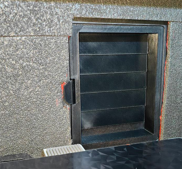 «шторка райзер.STEP» впрессовывается в «raiser ч4б.STEP» с наружной стороны. Не совместим с фильтром QIDI и другими вариантами райзера. При включении вентилятора шторка открывается от воздушного потока и закрывается при его отсутствии.
