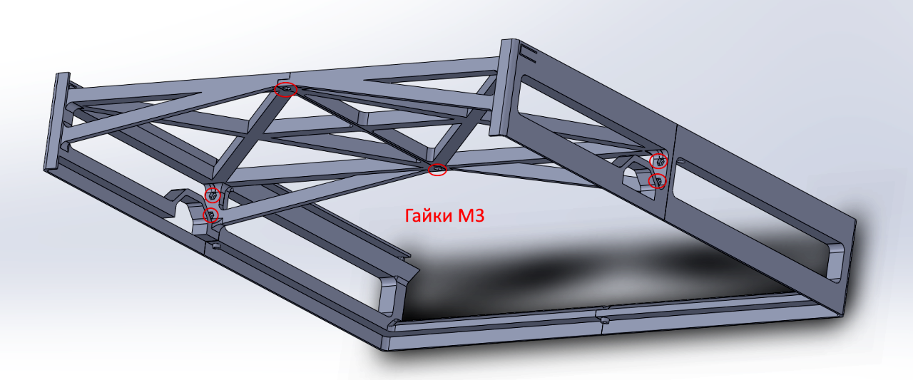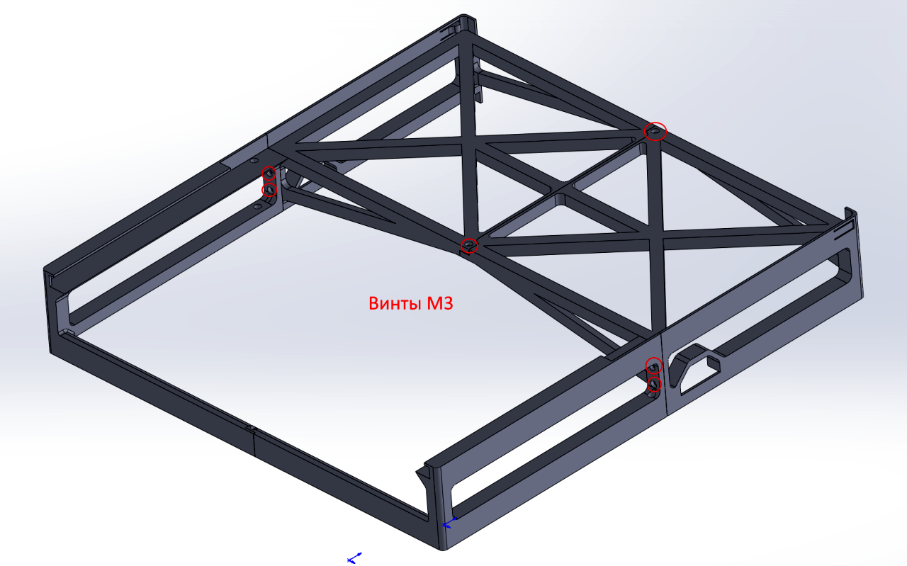После получения цельной конструкции фрейм прикручивается к райзеру винтами М3х12 и больше в трех местах.