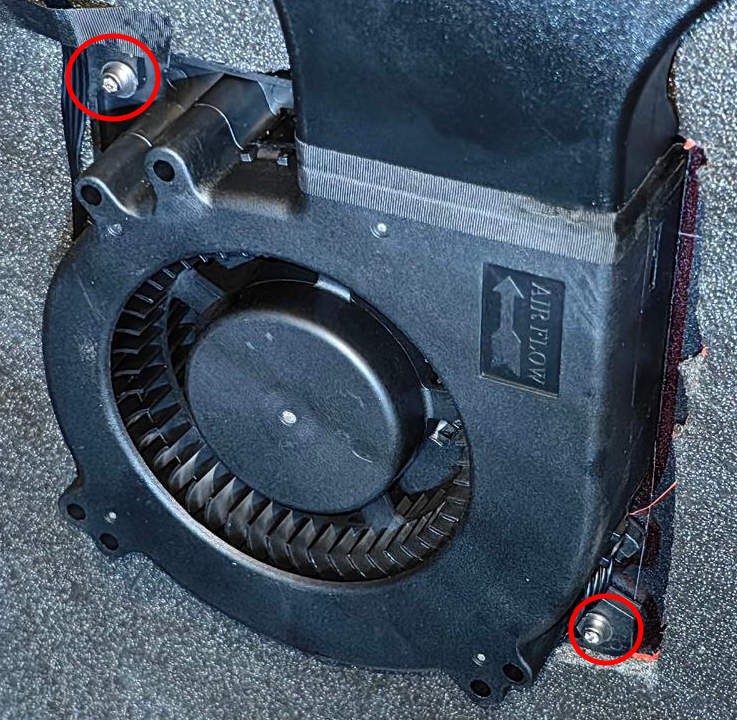 Сам вентилятор, а точнее его воздуховод, не даст вам снять панель из-за направляющей над ним, по сути вам придется приподнимать принтер с этой стороны, а панель сдвигать вниз, чтобы воздуховод вылез из-под направляющей. Возможно первый путь намного легче.