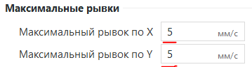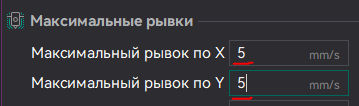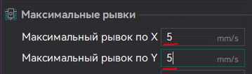 3.1.4 Далее, открываем вкладку «Ограничения принтера» и в блоке «Максимальные рывки» рывок по X и Y ставим 5: