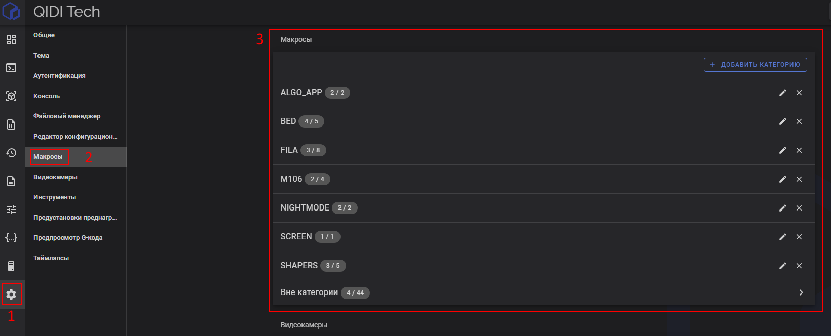 Добавлена возможность перезагрузить отдельно экран принтера без перезапуска самого принтера. Для этого в веб интерфейсе выполните макрос «REBOOT_QIDI_SCREEN».