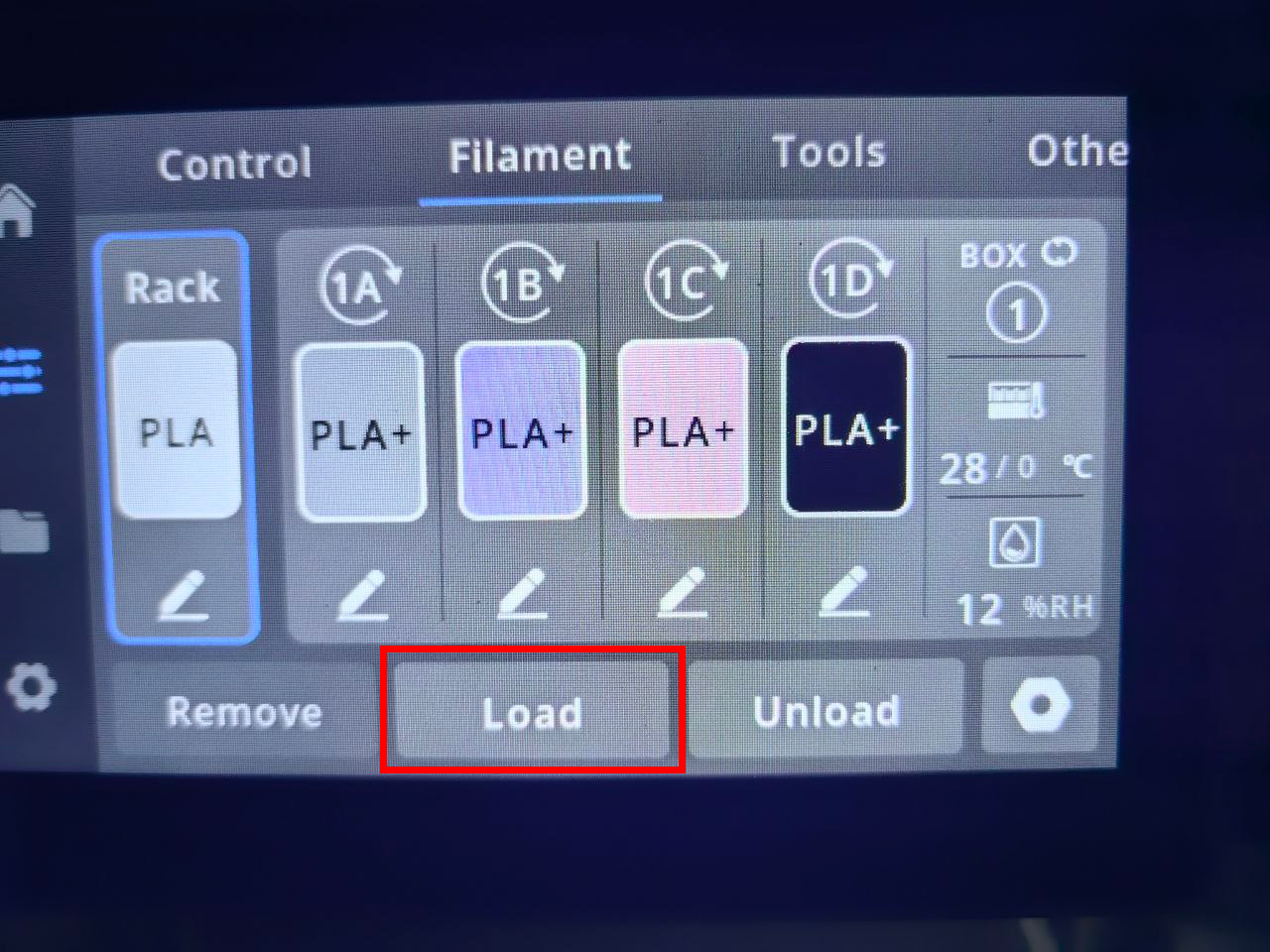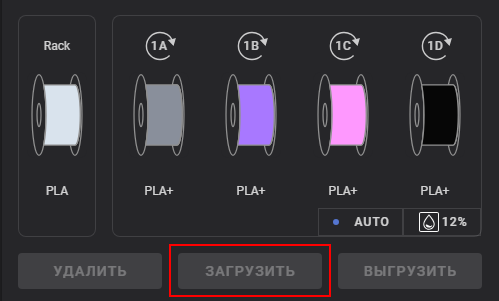 Он показывает отдельное окно с выбором загрузки для слотов, у которых есть филамент в наличии: